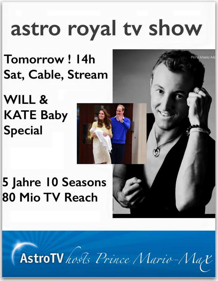 Who is Prince Mario-Max zu Schaumburg-Lippe: TV Host of Astro Royal TV Show on Astro TV´s Leichter Leben network. May 4, 2015 Special Feature on the Royal British Baby Daugher NEW PRINCESS Today at 2pm / 14h Berlin Time Who is Prince Mario-Max zu Schaumburg-Lippe: TV Host of Astro Royal TV Show on Astro TV´s Leichter Leben network. Like Loading...