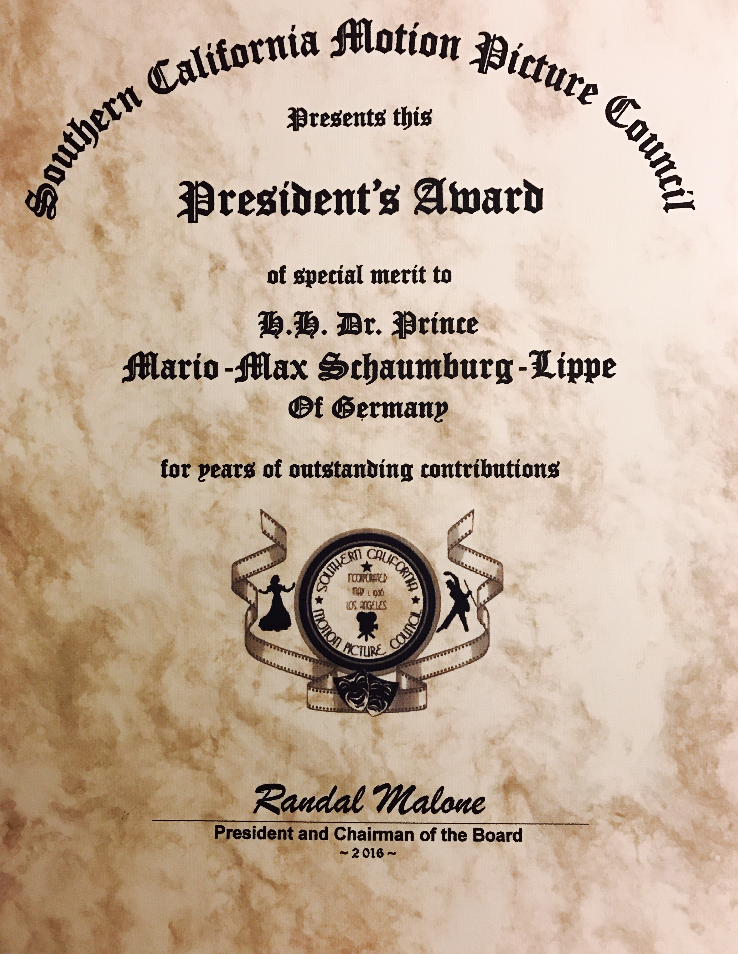 Prince Mario-Max Schaumburg-Lippe receives GOLDEN HALO AWARD for Interactive Media and Music & PRESIDENTS AWARD! So honored to be awarded by President Randal Malone and Oscar Winner Margaret O’Brien along with the other Golden Halo Winners Terry Moore thae former wife of Howard Hughes, Hollywood Star Jamie Luner of Melrose Place and Savannah, Julie Weintraub of Gold and Diamond Source and HSN and Bobbie Chance and Julie Adams.