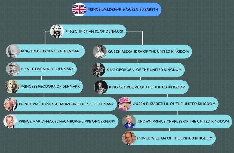 Prince Waldemar Schaumburg-Lippe of Germany (Prince Mario-Max father) family relation to Queen Elizabeth II. of the United Kingdom ๐ฌ๐งย November 15, 2016 Share this: Click to share on Facebook (Opens in new window) Facebook Click to share on X (Opens in new window) X Like Loading...