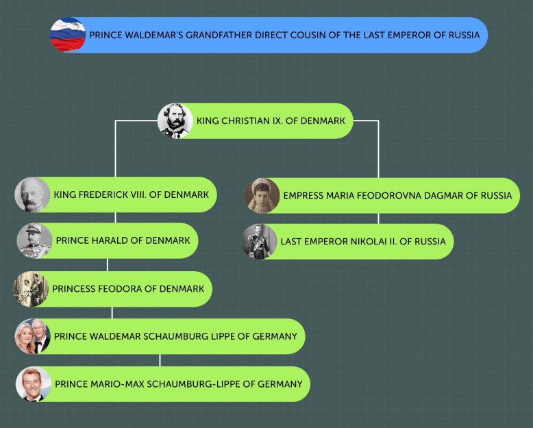 Grandfather of Prince Waldemar Schaumburg-Lippe of Germany (Prince Mario-Max father) direct cousin of Last Emperor of Russia!